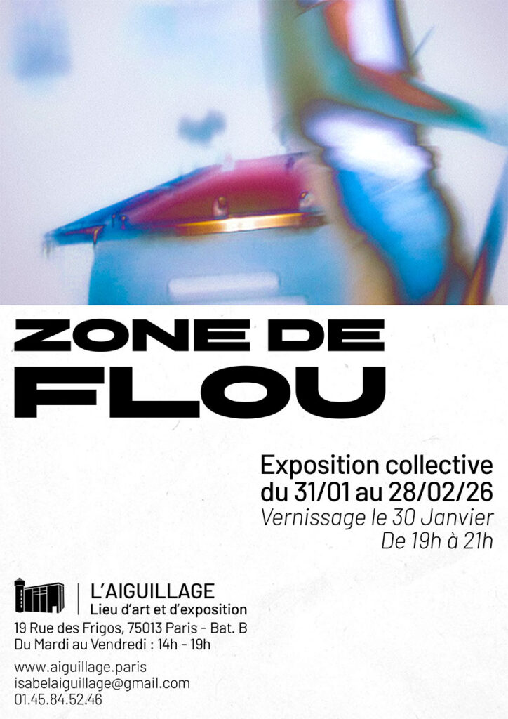 Zone de flou est une exposition collective multimédia présentée à l’Aiguillage, aux Frigos de Paris — lieu singulier de création et d’expérimentation artistique dans le 13ᵉ arrondissement.